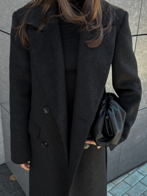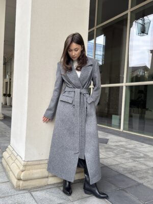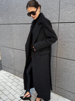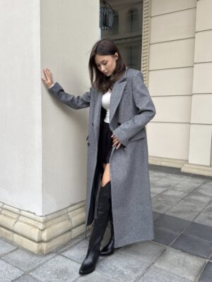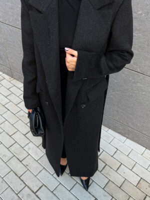 Пошите з високоякісної ворсової тканини, яка відрізняється щільністю та зносостійкістю. Матеріал тримає форму, не кошлатиться і має благородну фактуру. Завдяки ворсовому плетінню пальто виглядає глибше за кольором і вигідно відрізняється від класичних варіантів.